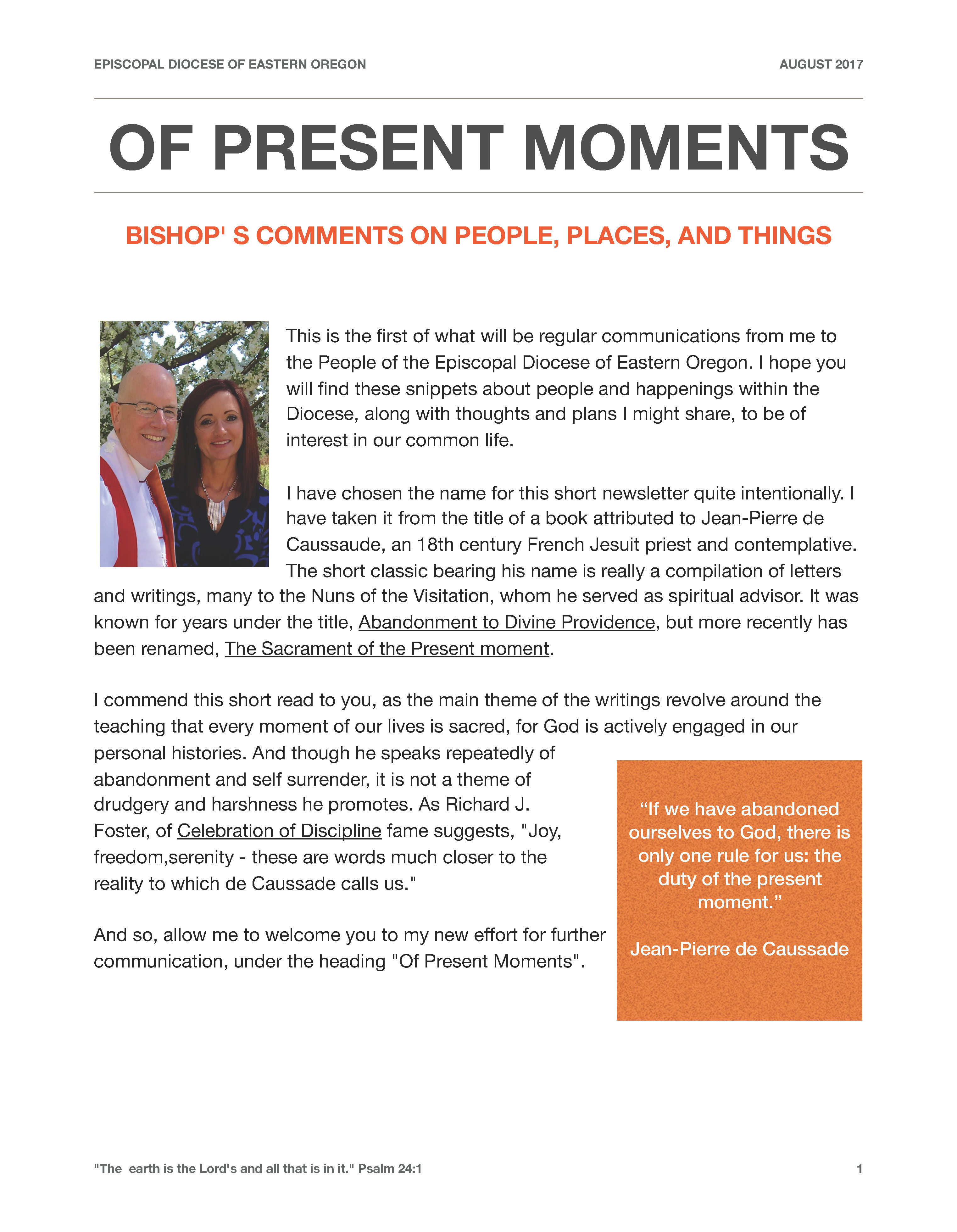 Printable version (pdf): Bishop’s Newsletter, “Of Present Moments”